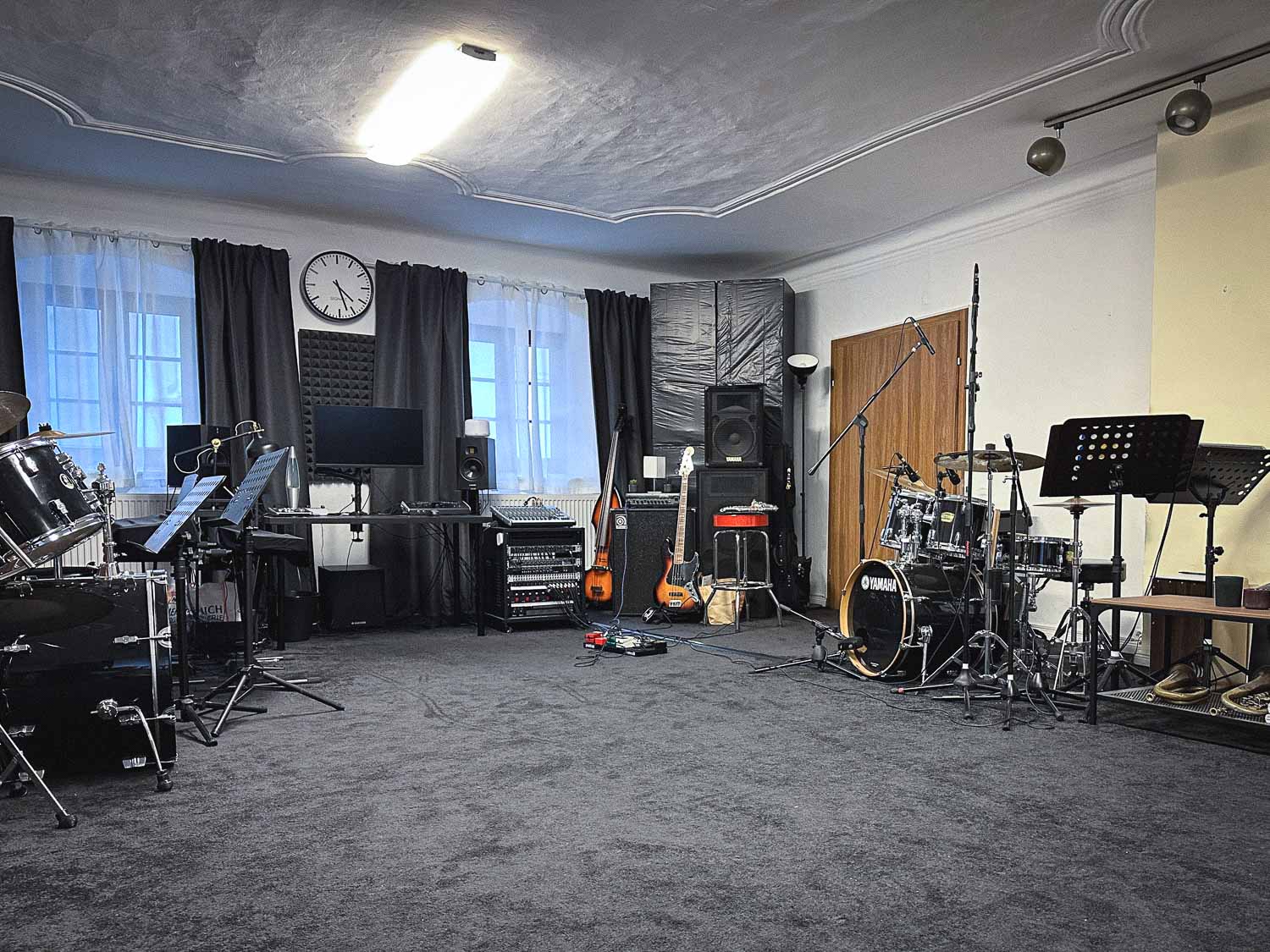 Es steht euch ein über 70m² grosser Raum zur Verfügung, der allen musikalischen Bedürfnissen angepasst ist.